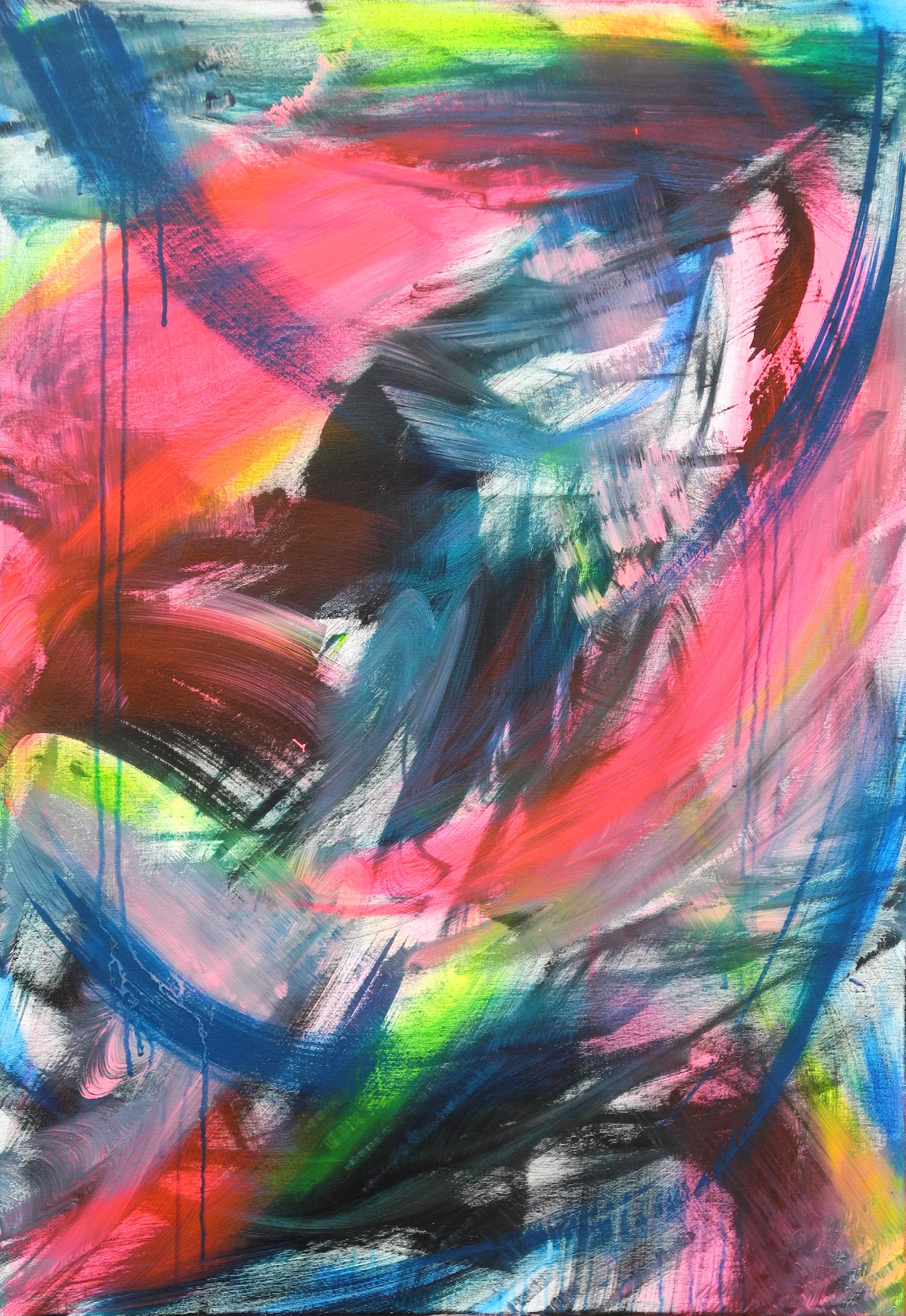 Ihre farbenfrohen & dynamische Kunstwerke entstehen in mehreren Farbschichten, wobei ihr Fokus in der Farbtiefe