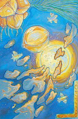Farbgebung: Die Malerei ist geprägt von hellen, leuchtenden Farben, die eine positive und unbeschwerte Stimmung vermitteln und die verspielten Motive unterstreichen.